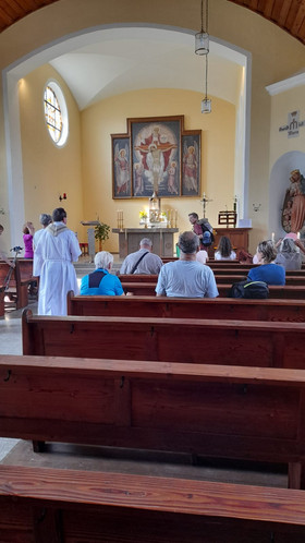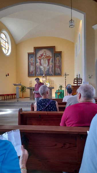 Am 06. September 2025 besuchten uns die Pilger aus Eger. Das ist eine kleine Pilgergruppe, bis zehn Personen. Die Pilger gehen zu Fuß von Eger nach Marienweiher. Sie machen Zwischenstationen in Thiersheim, Röslau, Bad Weissenstadt, Zell.