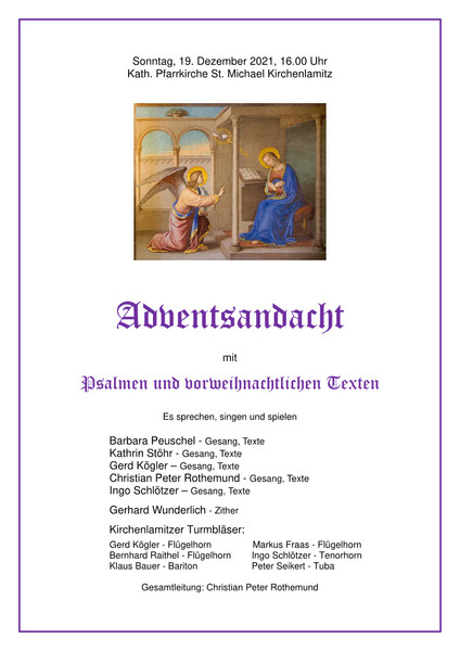 Zu einer „Musikalischen Adventsandacht“ kamen am vierten Adventssonntag ca. 70 Kirchenbesucher in die Pfarrkirche St. Michael nach Kirchenlamitz.
