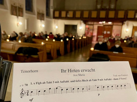 Nach einem kurzen Gebet und dem von Pfarrer i.R. Johann Riedl gespendeten Segen sang die Gemeinde, intoniert von den Turmbläsern, zum Abschluss das Lied „Tochter Zion, freue dich“.
