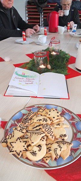 Zum letzten Mal in diesem Jahr trafen sich die Senioren, nach dem gemeinsamen Gottesdienst, zu ihrer Kaffeerunde im Pfarrheim Kirchenlamitz. Da die Adventszeit begonnen hatte war auch das Pfarrheim festlich geschmückt und es gab zum Kaffee Stollen und Plätzchen, vor allen die wunderschön gestalteten Butterplätzchen vom Mesner Herrn Peter Kaaden.