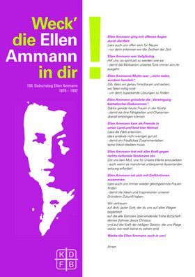 Leider fiel die große Feier hierzu in Regensburg auch der Pandemie zum Opfer und soll 2022 nachgeholt werden. Ihr zu Ehren startete der KDFB Landesverband Bayern die Mitmach-Aktion „Weck die Ellen Ammann in dir“.