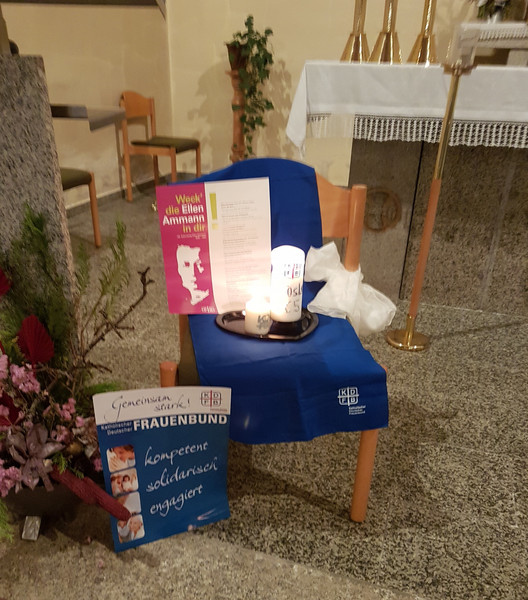 Deshalb trafen sich die Frauenbundmitglieder in der Katholischen Kirche Hl. Dreifaltigkeit zu einer Andacht mit Gemeindereferent Thomas Kern. Er erinnerte an die Gründerin des KDFB, Frau Ellen Ammann, die in diesem Jahr 150 Jahre alt geworden wäre. Ellen Ammann, die mutig und voller Energie war in ihrem Einsatz für Frauen war außerdem eine tiefgläubige Katholikin.