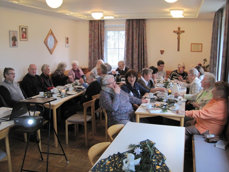 Thomas Kern begrüßte dabei über 20 Damen und Herren im Pfarrheim, welches von Helga Schmidt-Paul und Rosi Seel wunderschön adventlich geschmückt und mit weißen Engeln dekoriert worden war.