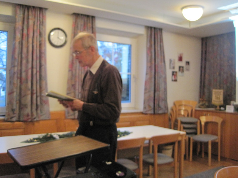 Danach wurde eine Film-Andacht mit dem Titel „Gott überrascht“ gehalten, passend zum bevorstehenden Weihnachtsfest. In diesem Film wurde Gottes weihnachtliche Botschaft in bewegten Bildern, in Ton und Farbe gezeigt, aber auch mit Gebet, mit Impulsen zum Nachdenken und mit Gesang untermalt.