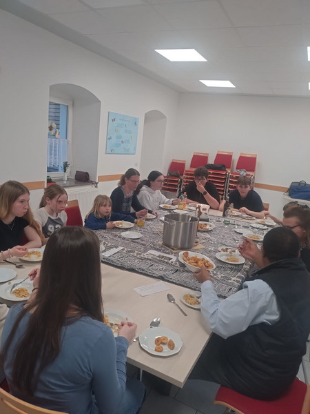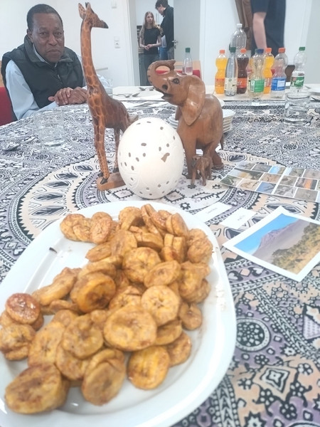 Beim gemeinsamen Essen der mit Liebe zubereiteten Gerichte wurde noch zu manches Detail zum Leben in Afrika besprochen und die Minis ließen sich gerne für ihre Kochkünste loben. Pater Inno gestand, dass es sich nach Heimat anfühlt, da er seit seiner Ankunft in Deutschland das erste Mal wieder Kochbananen essen durfte, die in seiner Heimat täglich auf dem Speiseplan stehen.