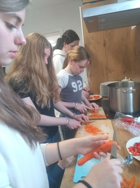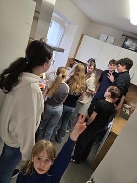 Um den Nachmittag / Abend authentisch zu gestalten, hatte sich die Gruppe zwei landestypische Rezepte zum Nachkochen ausgesucht - Süße Kochbananen und ein afrikanisches Pilau (Reisgericht), die sie gemeinsam in der Küche des Pfarrheims kochten. Man kann beim Blick auf die Fotos nicht abstreiten, dass 10 Kinder und Jugendliche gemeinsam in der Pfarrküche einen Hauch von "afrikanischer Garküche" erzeugen.