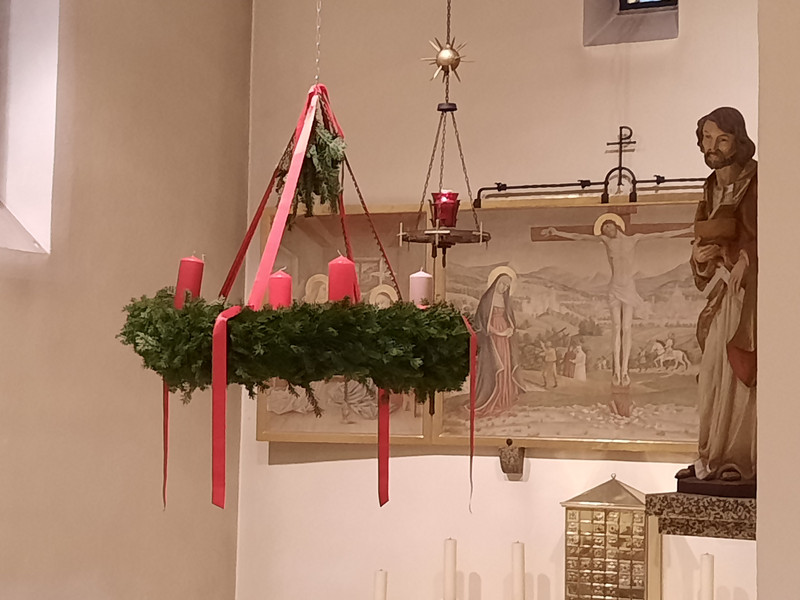 Am Mittwoch vor dem ersten Advent trafen sich vier Frauen mit Mesnerin Annemarie Beck, um den Adventskranz zu binden und für die Adventszeit in der Pfarrkirche Maria Immaculata Weißenstadt herzurichten. Wie schon seit vielen Jahren wurde auch heuer wieder mit vereinten Kräften ein wunderschöner Adventskranz für unser Gotteshaus geschmückt.