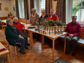 Fleißige Frauen aus der Pfarrei Weißenstadt haben am Freitag den 8. April 2022 schöne Palmbuschen für den Palmsonntag gebunden. Dazu trafen sich die sechs Damen Annemarie Beck, Brigitte Kaufmann, Renate Pietschka, Hilde Schill, Helga Schmidt-Paul und Rosi Seel im Pfarrheim Weißenstadt. Zusätzlich wurden von Renate Pietschka, Rosi Seel und Barbara Weiß in Heimarbeit wunderschöne Osterkerzen verziert.