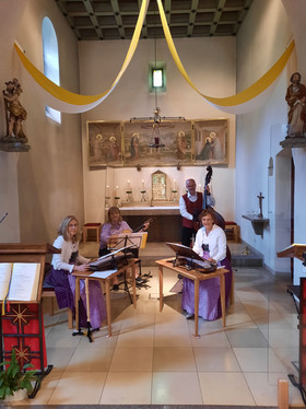 Zum Thema „Maria, Königin des Friedens“ feierten sie zusammen mit Gemeindereferent Thomas Kern eine Marienfeier, die von der 4-köpfigen Zithergruppe „Vielsaitig“ unter der Leitung von Brigitte Schmutzler musikalisch umrahmt wurde.