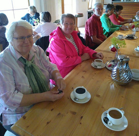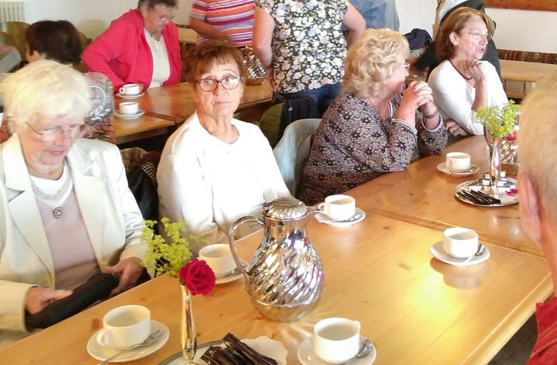 Nach dieser informationsreichen Stunde ging die Reise weiter zum Ökolandgut Federkiel. Dort warteten schon einige leckere Torten und verlockend duftender Kaffee auf uns. Wir stärkten uns erstmal ausgiebig, bevor wir den Ausführungen von Astrid Kriechenbauer lauschten. Sie schilderte die Geschichte des Landgutes und führte uns detailreich durch ihr Leben als Gastwirtin, Köchin und Bäuerin. Sie war sogar schon mit der Landfrauenküche im Fernsehen unterwegs. Zum Abschluss machten wir noch einen Rundgang um das Anwesen bevor wir uns wieder auf den Heimweg begaben.