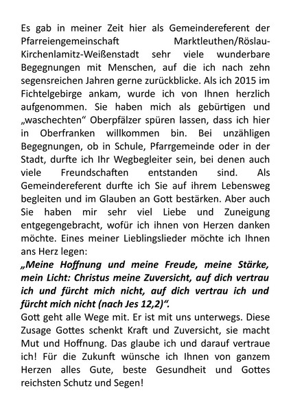 "Tolle Abschiedsfeier mit vielen Gläubigen und Freunden in Marktleuthen“