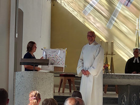 Für zehn besondere Jahre dankte auch Christian Peter Rothemund vom Kirchenchor. Der Chor habe zwar seine Aktivität eingestellt, aber zum Abschied ließen es sich die Sängerinnen und Sänger glücklicherweise doch nicht nehmen, Kern ein Segenslied mit auf den Weg zu geben.
