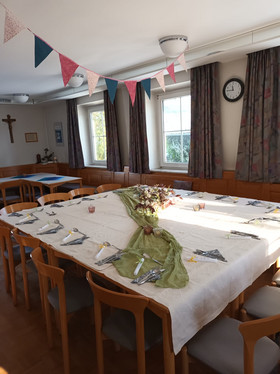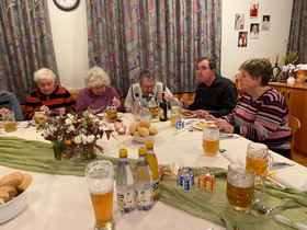 Nach dem Gottestdienst trafen sich die Helfer um Pfarrgemeinderat, Kirchenverwaltung und Pfarrer Gromadzki im Pfarrheim. Bei einem leckeren Essen wurde viel erzählt und gestaunt, was im vergangenem Jahr alles an Arbeiten geleistet wurde.