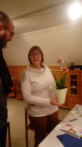 Danach folgten die Gratulationen der Geburtstagskinder seit dem Erntedankfest, Inge Rammonat, Liesl Stowasser, Monika Eberlein (zum 70. Geburtstag), Gerda Hausmann und Ingeborg Sommerer. Einen Spruch für die Herbstgeburtstagskinder gab es auch, er lautete: „Der Herbst ist des Jahres schönstes farbiges Lächeln“.