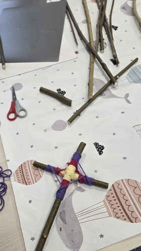Das gemeinsame Basteln durfte natürlich nicht fehlen und so wurden im Anschluss Kreuze aus Ästen und farbiger Wolle gestaltet, die die Osterfreude bereits erahnen lassen. Voller Vorfreude auf das Osterfest haben die Kinder samt Familien den Heimweg angetreten.