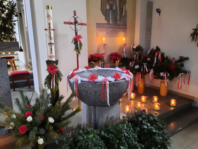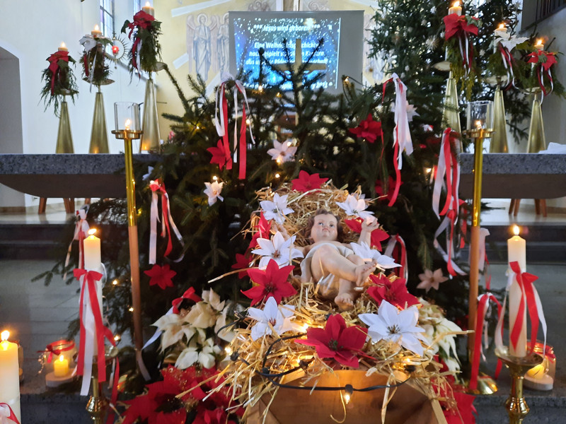 Am Heiligen Abend fand für die Kinder mit ihren Familien eine Kinderkrippenfeier in Marktleuthen statt. Aufgrund des schlechten Wetters entschloss man sich kurzfristig, die Feier – unter Einhaltung der vorgeschriebenen 3-G-Regel – in die Kirche St. Wolfgang zu verlegen.