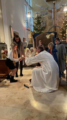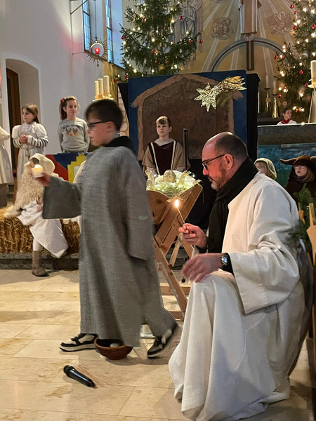 Am Heiligabend fand um 15:30 Uhr in der Katholischen Kirche Marktleuthen eine Kinderchristmette mit Krippenspiel statt. Pfarrer Andrzej Gromadzki zelebrierte den Wortgottesdienst in der gut besuchten und weihnachtlich geschmückten Pfarrkirche St. Wolfgang.