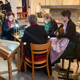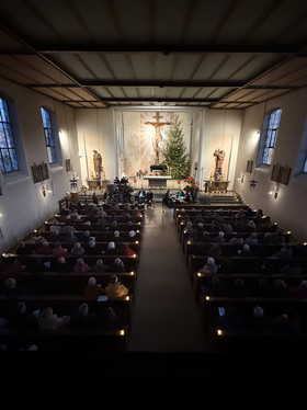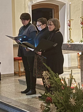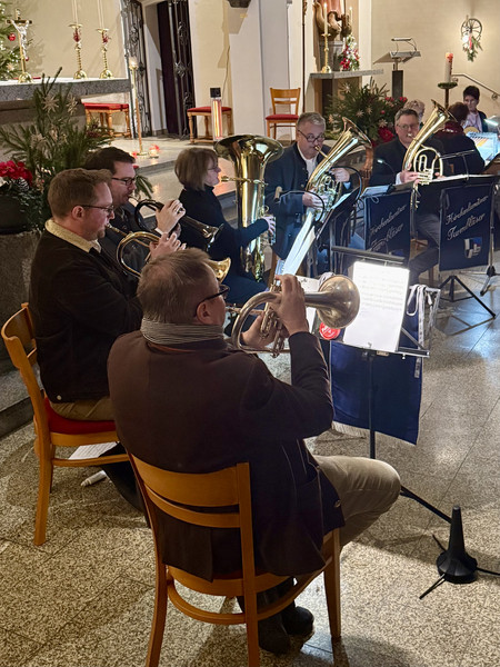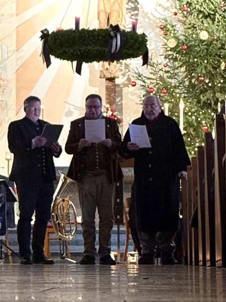 Die sechs Turmbläser unter der Leitung von Ingo Schlötzer begrüßten die Zuhörer schwungvoll und mit strahlendem Blech mit dem Stück „Enatus est Emanuel“ von Michael Praetorius. Ruhig und gefühlvoll spielten die Waldsteinsaiten im Sound einer klassischen Stubenmusik, teils mit Gesang, Stücke wie „Still, ganz still“ oder „Weihnachtssterne über‘m Waldstein“ und verzauberten die Kirche ein wenig in eine heimelige Stube. Der Männergesang um den Erfinder der Kirchenlamitzer Weihnacht, Christian Peter Rothemund, sang ein dreistimmiges „Magnificat“ und das Gesangstrio „SoLo“ brachte mit sauberem Gesang und gefühlvollen Stimmen schöne Lieder wie „Warst gestern scha wieder net daham“ oder „Was soll das bedeuten“ zu Gehör. Die Turmbläser intonierten mit ihrem weit mensurierten weichen Hörnerklang der Tenor- und Flügelhörner fränkische Weihnachtsweisen wie „Ihr Hirten erwacht“ oder den „Hirschstaa-Schottisch“ bevor es dann mit dem „Adventboarischen“ fast schon etwas zünftig wurde. Pfarrer Gromadzki bedankte sich bei den Mitwirkenden um Pfarrgemeinderatssprecher Ingo Schlötzer für diese schöne vorweihnachtliche Stunde und spendete den Segen bevor die Veranstaltung mit dem gemeinsamen Weihnachtslied „Es ist ein Ros entsprungen“ und lang anhaltendem Applaus zu Ende ging.