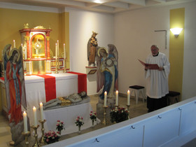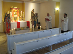 Es folgte die von Lektor Patrick Mindel vorgetragene Lesung aus dem Lukasevangelium (Lk 23,50-55). Danach wurde gemeinsam die Antiphon gebetet: „Christus war für uns gehorsam bis zum Tod, bis zum Tod am Kreuz. Darum hat ihn Gott über alle erhöht und ihm den Namen verliehen, der größer ist als alle Namen.“