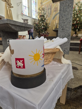 Stolz haben die KiGo-Kinder am Sonntag, 1.2., im Vorgriff auf Mariä Lichtmess ihre neu gestaltete Jesuskerze zur Segnung in die Kirche St. Wolfgang in Marktleuthen gebracht.