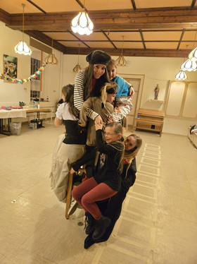 Ein besonderes Highlight war das lustige Pinguin-Spiel: Dabei machte sich ein Spieler ganz langsam wie ein Pinguin auf den Weg zu einem leeren Stuhl. Die übrigen Mitspieler versuchten, ihn daran zu hindern, diesen zu erreichen. Für zusätzliche Spannung sorgte die Regel, dass es immer genau einen Stuhl mehr als Verteidiger gab. Dieses Spiel und weitere Spiele sorgten für viele Lacher und große Begeisterung bei allen Beteiligten.