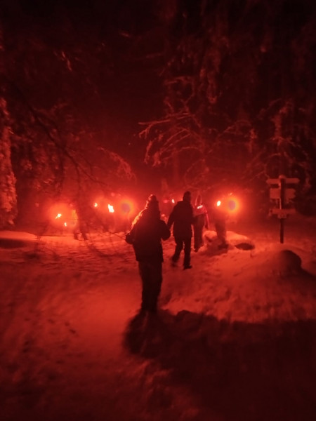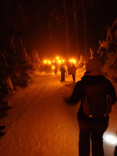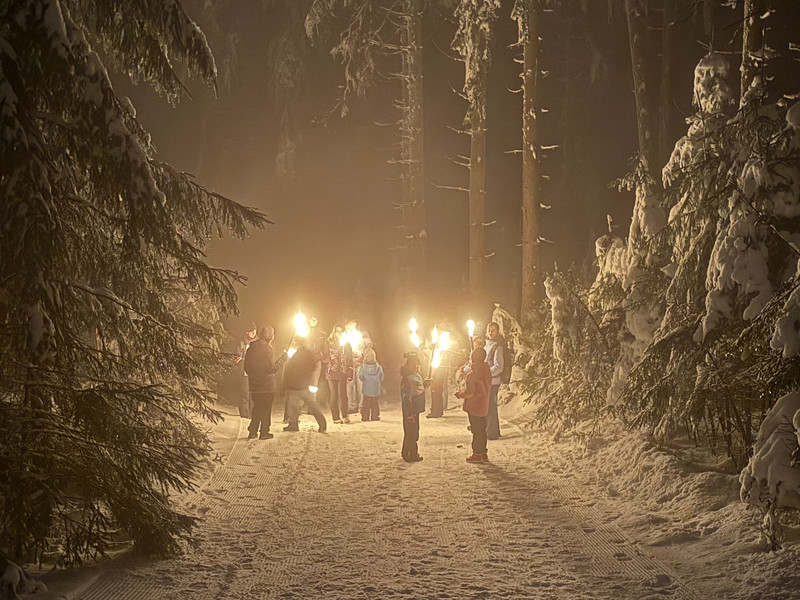 Am 6.02.2026 machten sich die Ministranten gemeinsam mit Familie und Freunden auf den Weg zu einer Fackelwanderung auf den Epprechtstein. Begleitet wurde die Wanderung von den Gruppenleitern Anika, Korbinian und Marlene, die stets ein Auge auf die Gruppe hatten. Außerdem waren mehrere Ministranten mit Freunden, Kinder aus dem Kindergottesdienst und mehrere Eltern, die als zusätzliche Unterstützung dienten, dabei. Durch die Möglichkeit Begleitpersonen mitzunehmen, kam eine große und gut gelaunte Gruppe zusammen.
