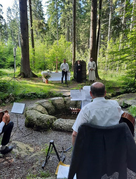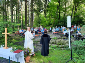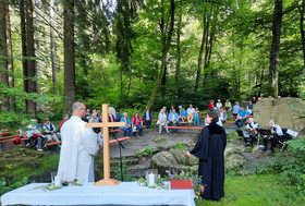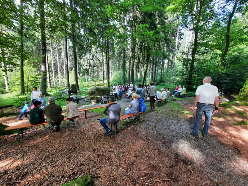 Am Samstag, den 10.07.2021 fand um 17 Uhr eine Ökumenische Abendandacht an der Egerquelle statt, die von der evangelischen Pfarrerin Lisa Keck zusammen mit Gemeindereferent Thomas Kern gestaltet wurde.