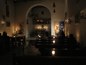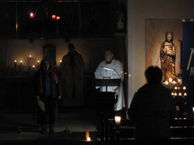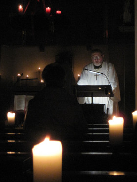 In der mit Kerzenschein beleuchteten Marienkirche zelebrierte Pfarrer Oliver P. Pollinger den Gottesdienst.