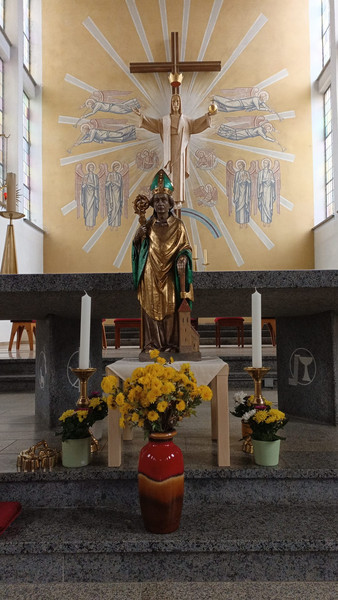 Heute feiern wir in Marktleuthen Patrozinium St. Wolfgang. Auf den Fotos sehen Sie den Kirchenschmuck mit der Statue des Heiligen Wolfgangs.
