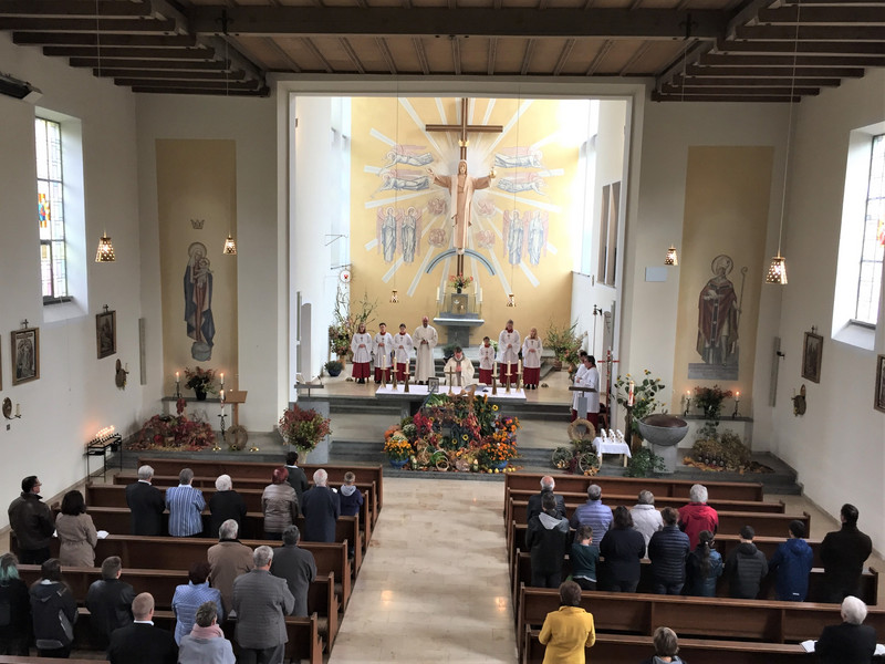 Pfarrer Oliver P. Pollinger zelebrierte den Festgottesdienst in der wunderschön mit Erntedankgaben geschmückten Pfarrkirche St. Wolfgang.