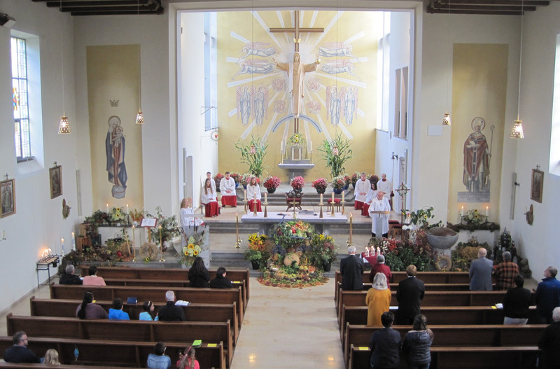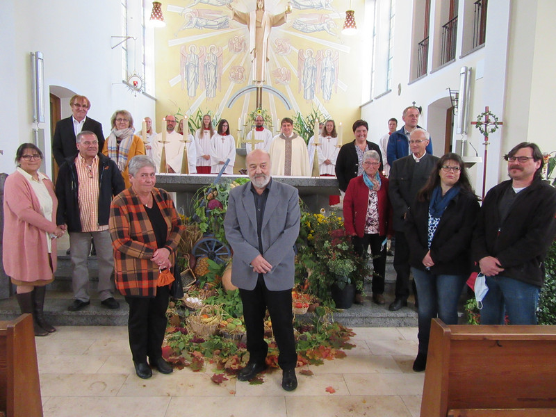 Pfarrer Pollinger zelebrierte den feierlichen Festgottesdienst in der wunderschön mit Erntedankgaben geschmückten Pfarrkirche St. Wolfgang Marktleuthen, musikalisch umrahmt von Kantor Christian P. Rothemund und Organist Stephan Scheffel an der Orgel.