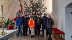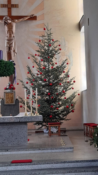 Am Samstag vor dem 4. Advent stellten fleißige Helferinnen und Helfer aus der Pfarrei Kirchenlamitz ihren Weihnachtsbaum auf. Dieses Jahr wird der Christbaum mit roten Kugeln in der Pfarrkirche St. Michael erstrahlen. Weihnachten kann kommen ...