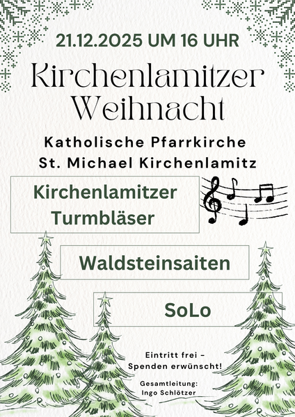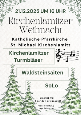 Die Veranstaltung findet am Sonntag, 21.12.2025 um 16 Uhr in der katholischen Kirche in Kirchenlamitz statt. Der Eintritt ist frei!